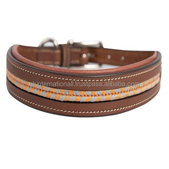 ปลอกคอสุนัขหนังพรีเมี่ยมสีน้ำตาลสำหรับงานหนักพร้อมหัวเข็มขัดทองเหลืองปรับขนาดได้และแหวนรูปตัว D ชุบนิกเกิล
