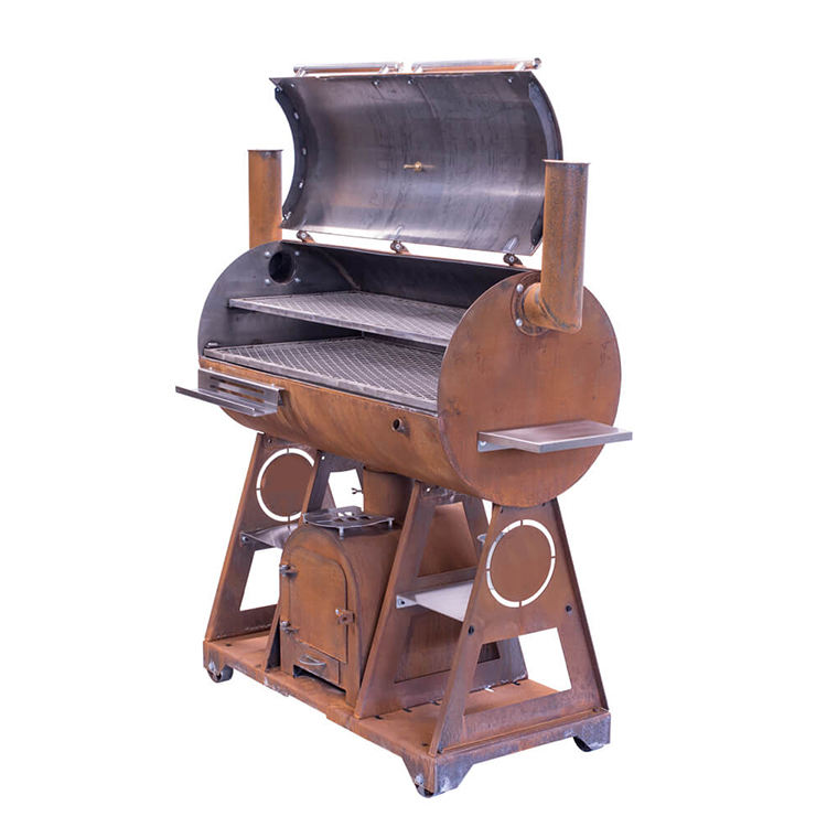 เตาย่างบาร์บีคิวทำจากไม้ฟืนสำหรับงานหนักพร้อมถังถอดออกได้และปล่องไฟก่อสร้างระดับพรีเมียม