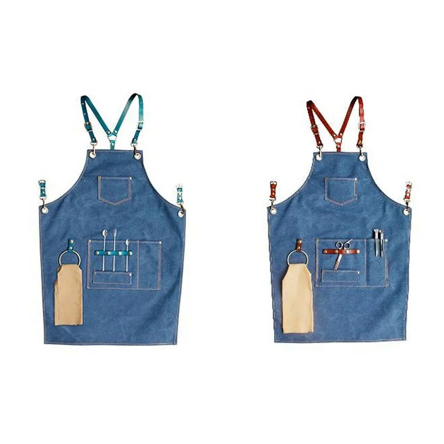 Heavy Duty Cotton Canvas Waterproof Chef Kitchen Apron Custom Logo Bib Sleeveless Cooking Apron for Cafe Restaurants