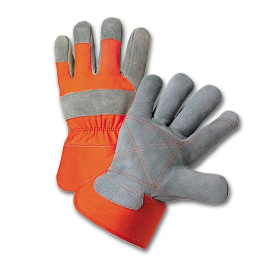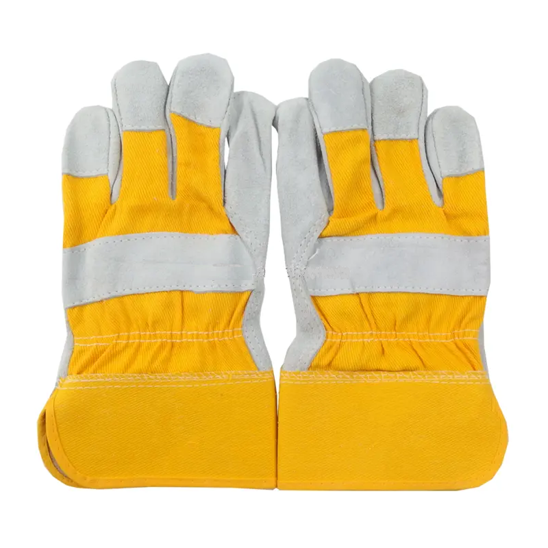 ถุงมือหนังวัวแยกสำหรับงานหนักพร้อมถุงมือข้อมือฝ่ามือระบายอากาศได้ดีสำหรับกลางแจ้งทำงานประจำวัน