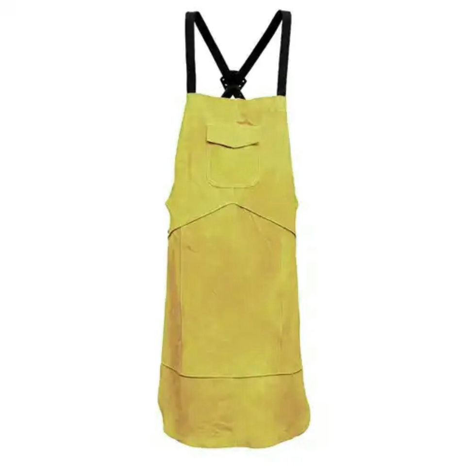 ผ้ากันเปื้อนหนังวัวแท้สำหรับงานเชื่อม ทนความร้อน ป้องกันอันตรายในงานอุตสาหกรรม แบบไม่มีแขน ป้องกันไฟ
