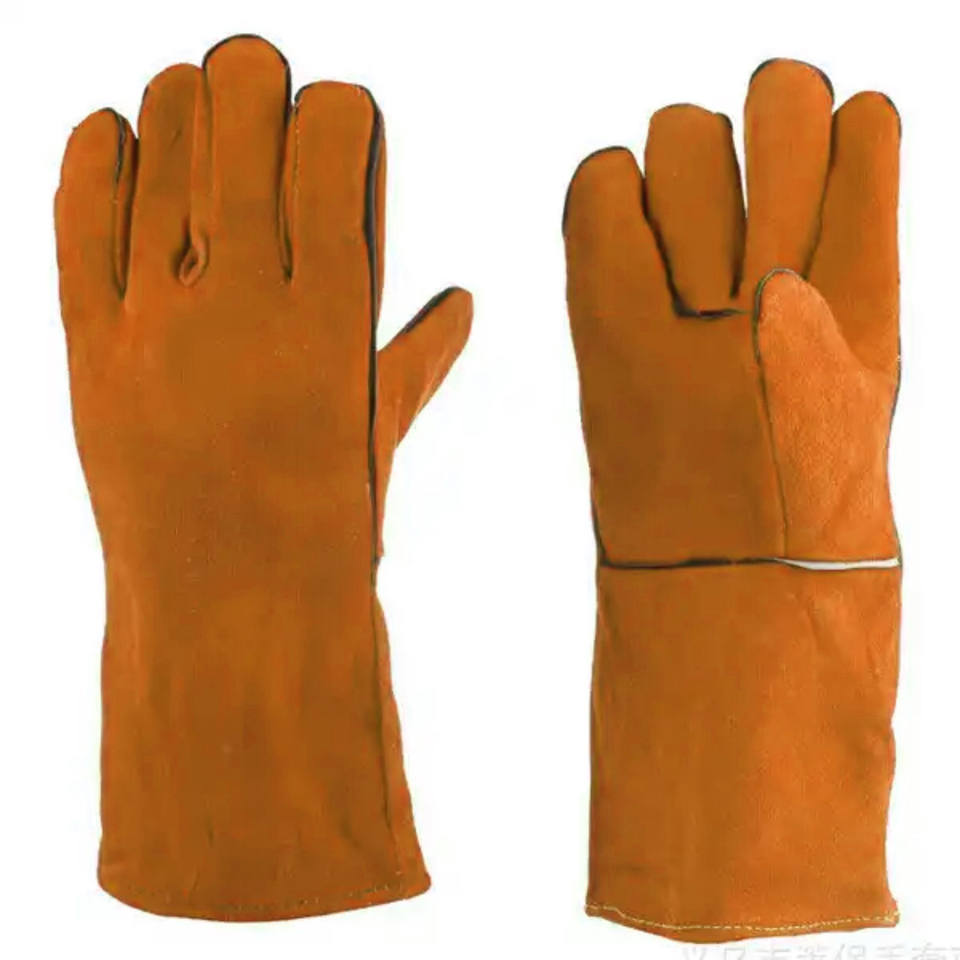 ถุงมือเชื่อมหนังวัวแยกสำหรับงานหนักถุงมือนิรภัยทนความร้อนกันรอยขีดข่วน