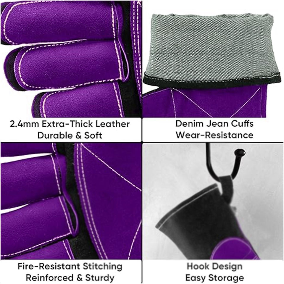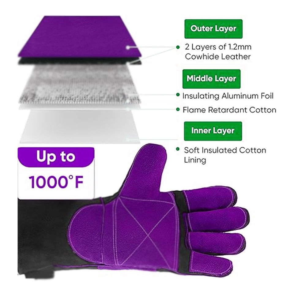 ถุงมือทำงานเชื่อมหนังวัวแยกชิ้นสำหรับงานหนักถุงมือทำงานเชื่อมบาร์บีคิวทนความร้อน