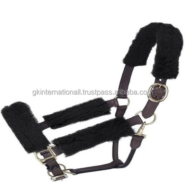 เชือกหนังสองชั้นสำหรับงานหนัก,ผ้าฟลีซรองสำหรับผูกม้ามงกุฏสายรัดพร้อมหัวเข็มขัดและแหวนทองเหลืองแบบปรับได้
