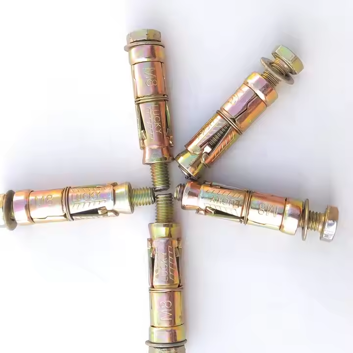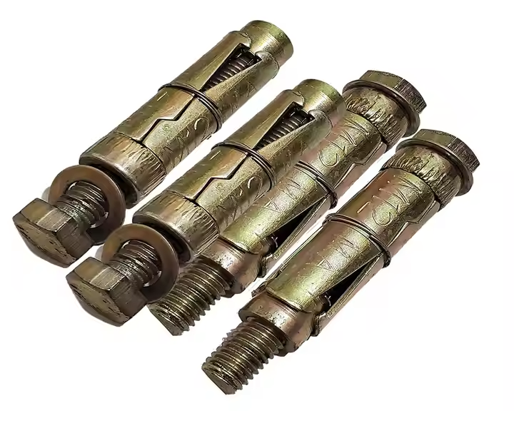 สลักเกลียวเหล็กชุบสังกะสีสีเหลืองระบบยึดคอนกรีตชนิดใหม่พร้อมส่วนประกอบพลาสติกไนลอน