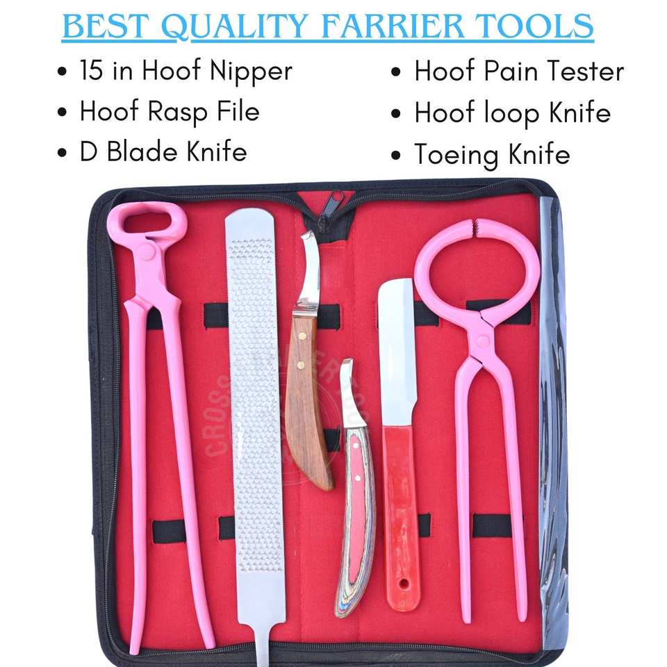 ชุดเครื่องมือช่างตัดแต่งกีบม้าแบบหนัก พร้อมที่ตัดกีบม้าแบบฟันคม ตะไบขูดกีบม้า มีดตัดแต่งกีบม้า มีดโค้ง และอุปกรณ์ทดสอบ