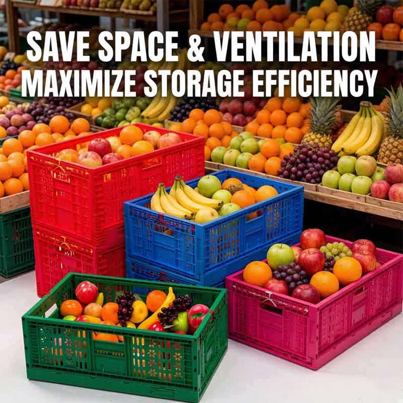 ลังพลาสติกพับได้สำหรับงานหนัก แบบมีรูระบายอากาศ สำหรับใส่ผักและผลไม้ สามารถวางซ้อนกันได้