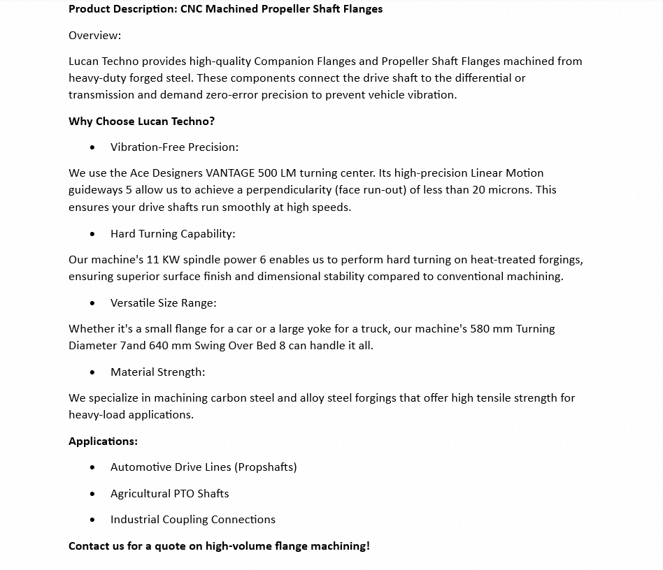 เพลาขับเหล็กตีขึ้นรูปสำหรับงานหนัก LUCAN TECHNO พร้อมหน้าแปลนเสริม ขนาดเส้นผ่านศูนย์กลางหมุนสูงสุด 580 มม. สำหรับระบบขับเคลื่อนยานยนต์