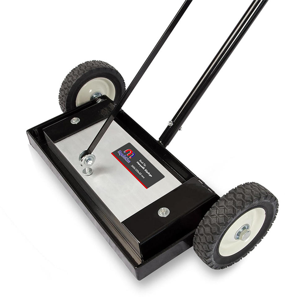 ที่กวาดแม่เหล็กรถยกสำหรับงานหนักที่ยึดด้านหลังสำหรับตะปูสกรูเก็บเศษเหล็ก
