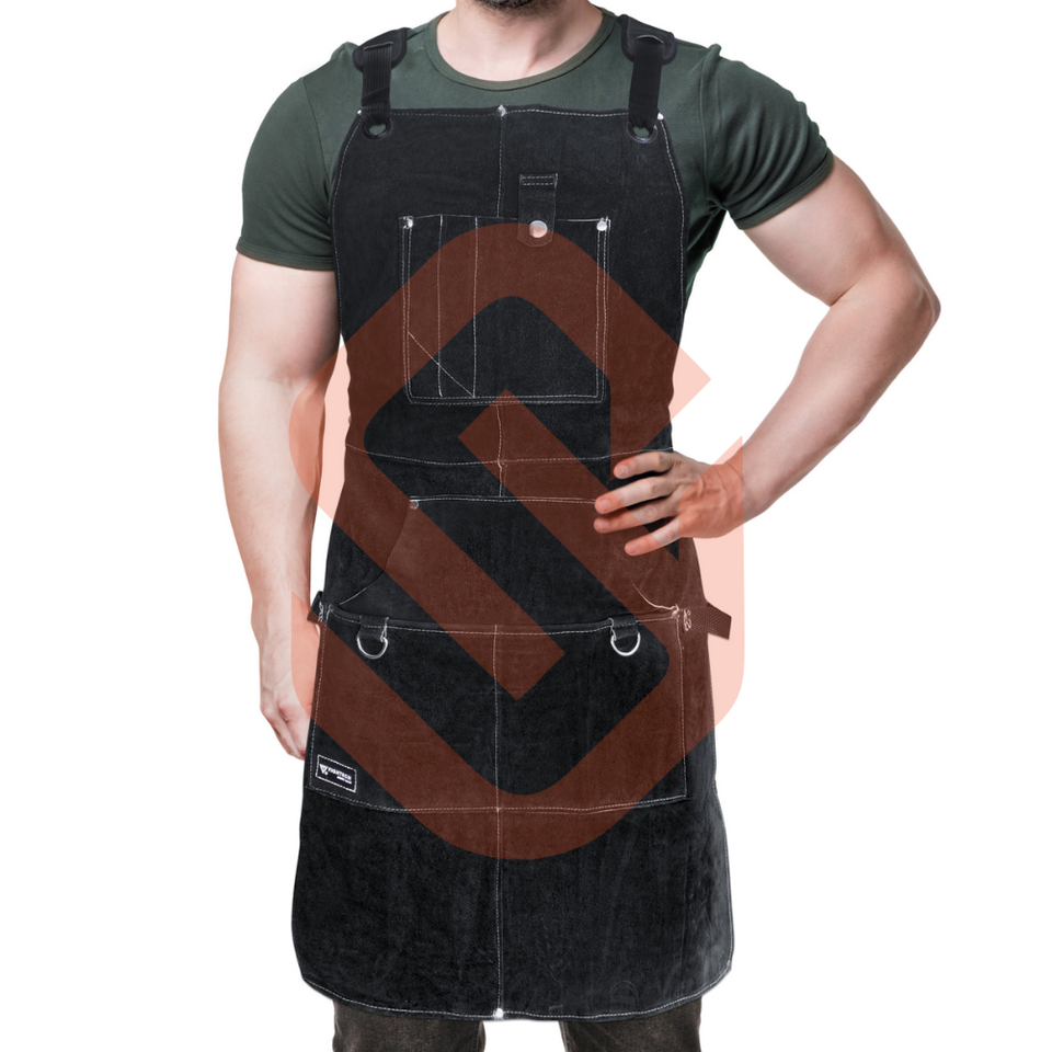 ผ้ากันเปื้อนสำหรับทำความสะอาดในสวนทนทานผ้ากันเปื้อนผ้าใบสีดำกันน้ำมีกระเป๋าสำหรับทำสวนและงานกลางแจ้ง