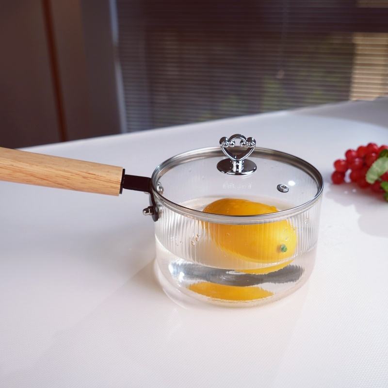 หม้อแก้วทนทานพร้อมที่จับสองอันบรรจุภัณฑ์สำหรับการต้อนรับและขายปลีก