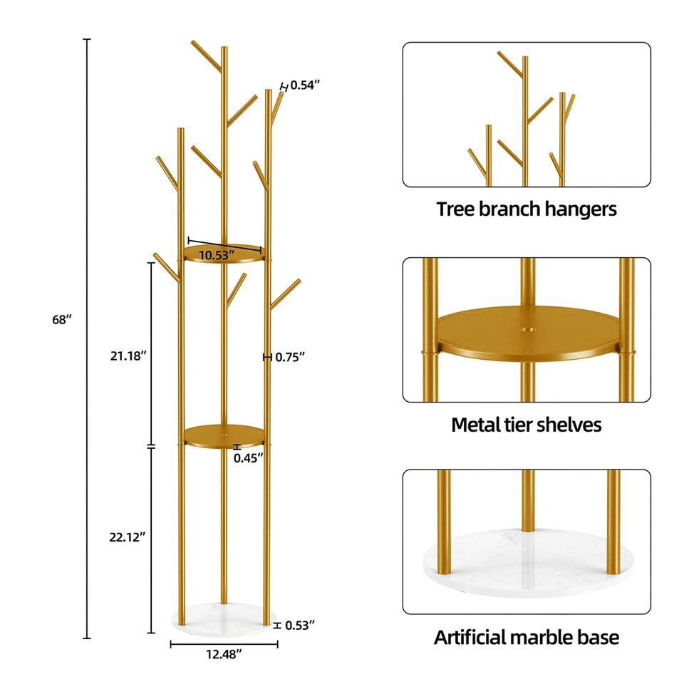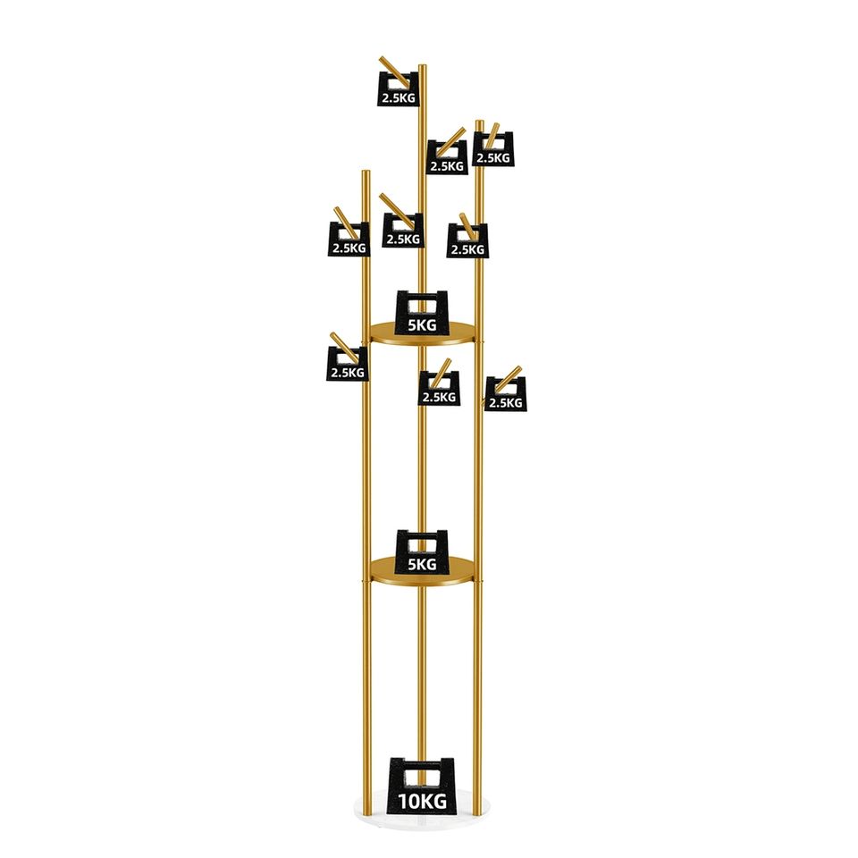 ชั้นแขวนเสื้อหมวกต้นไม้พร้อมฐานหินอ่อนสีทองสำหรับงานหนัก