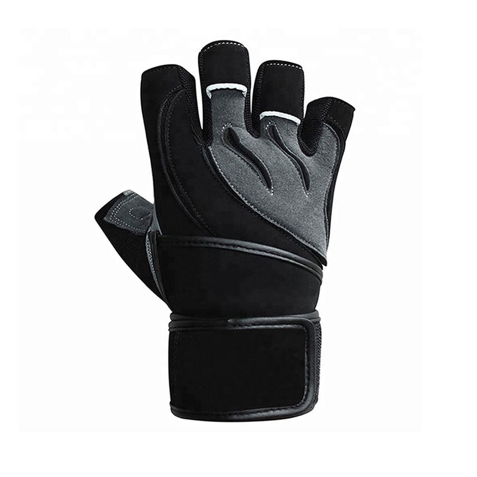 ถุงมือออกกำลังกายแบบครึ่งนิ้วสำหรับงานหนัก ฝ่ามือทำจากหนังแท้ สายรัดข้อมือปรับได้สำหรับการฝึกยกน้ำหนัก