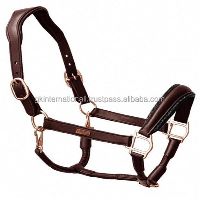 Heavy Duty Havana Brown Genuine Leather Anatomical Halter Horse in All Custom Sizes and Adjustable Brass Hardware All Sizes