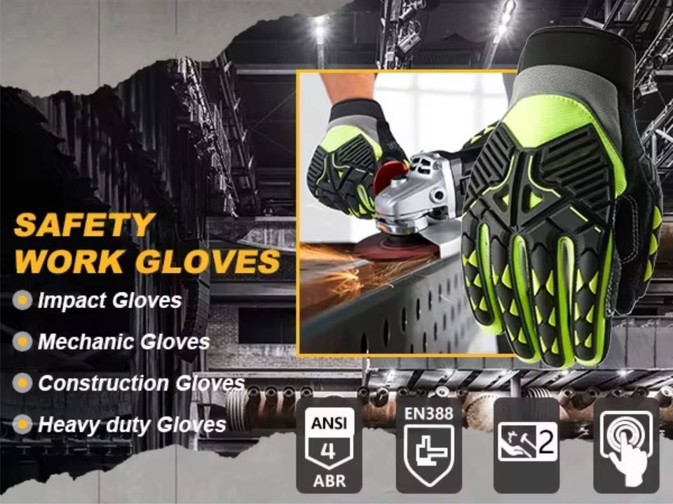 ถุงมือช่างงานหนัก ทนทานต่อการบาด ถุงมือป้องกันแรงกระแทก TPR