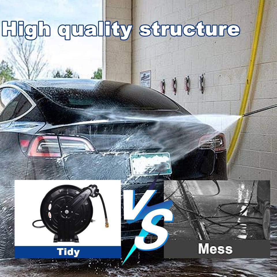 สายฉีดน้ำแรงดันสูงสำหรับงานหนัก พร้อมรอกเก็บสาย (สายขนาด 3/8 นิ้ว x 15 เมตร, 4000PSL)