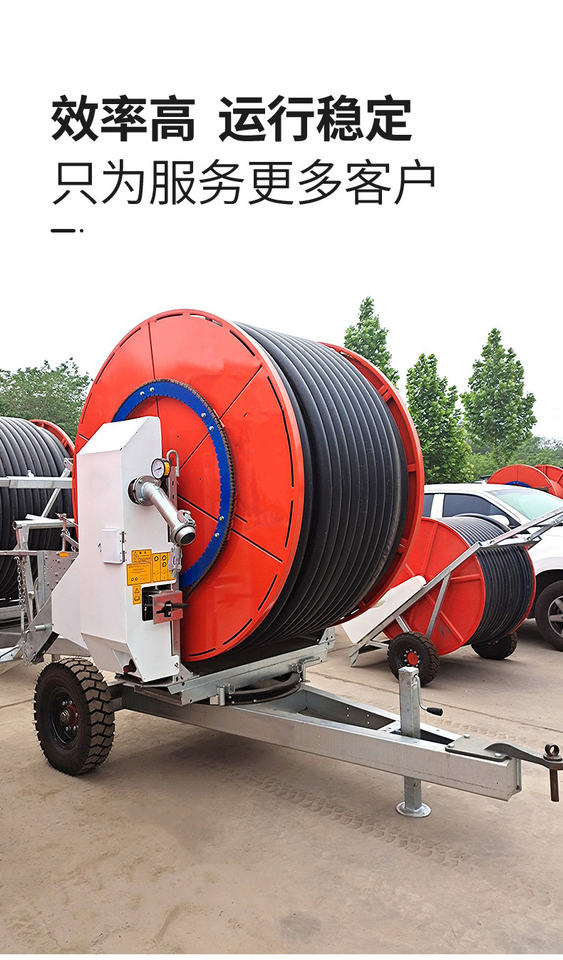 เครื่องชลประทานสายยางรดน้ำแบบม้วนสำหรับงานหนักพร้อมสปริงเกลอร์แบบกลองและบูมขนาดใหญ่