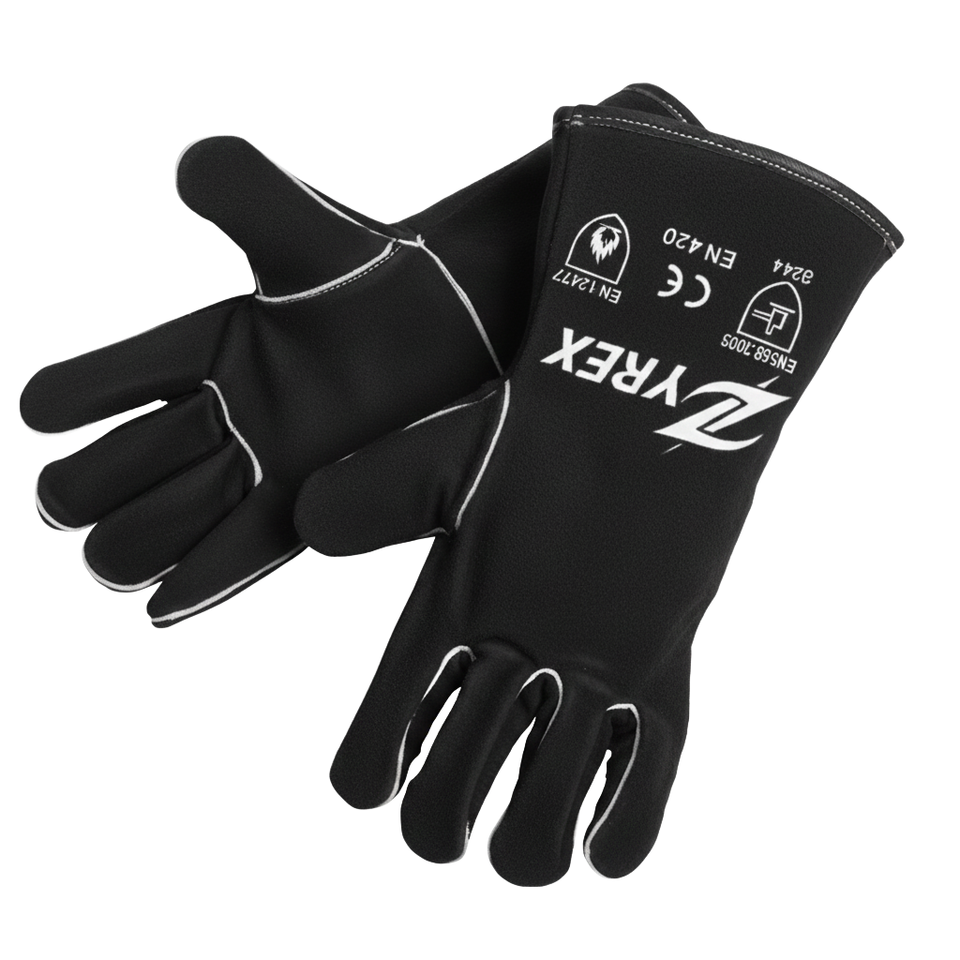 ถุงมือเชื่อมแบบหนาพิเศษสำหรับงานอุตสาหกรรม หนังแท้ทั้งฝ่ามือและข้อมือ พร้อมชั้นนีโอพรีนเสริมเพื่อความปลอดภัยในการทำงาน