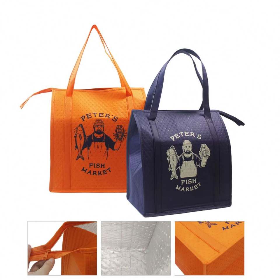กระเป๋าเก็บความเย็นแบบหนาพิเศษ ฉนวนกันความร้อน ซิปกันน้ำ พับได้ ความจุขนาดใหญ่ เป็นมิตรกับสิ่งแวดล้อม ผลิตจากผ้าไม่ถักทอเคลือบฟิล์มอะลูมิเนียม