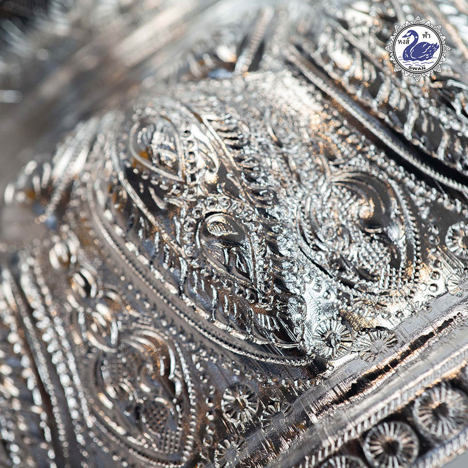 Heavy-Duty Kitchen Equipment Freedom Pedestal with Embossed Gold Silver Aluminum Serving Tray Made in Thailand