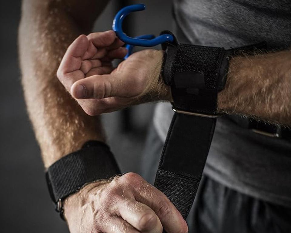 Heavy Duty Leather Weightlifting Strap with Plastic Lifting Hooks and Wrist Straps for Deadlifting and Working Shrugs
