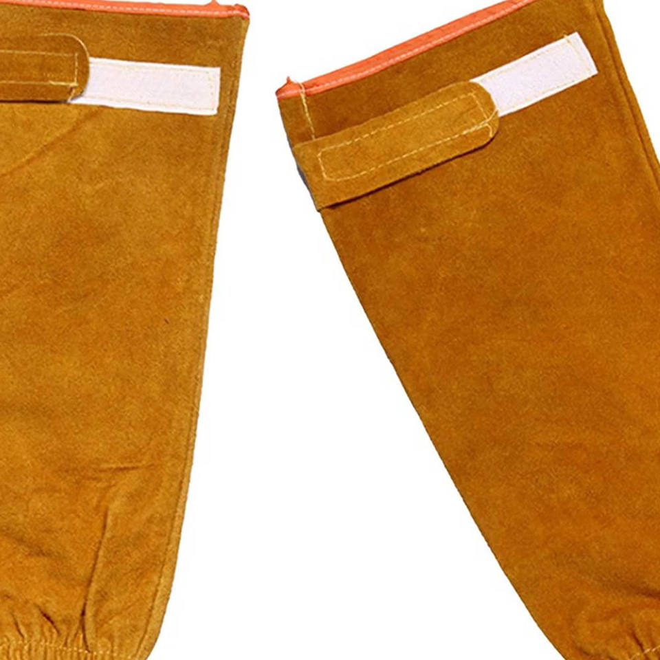 แขนช่างเชื่อมหนังสำหรับงานหนักแขนเสื้อทำงานคุณภาพสูงดีไซน์พรีเมียมพร้อมตะเข็บเชื่อม