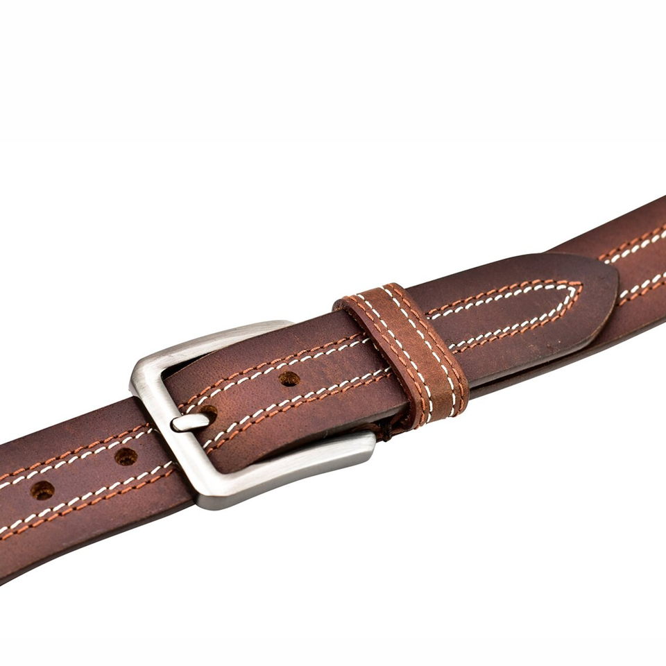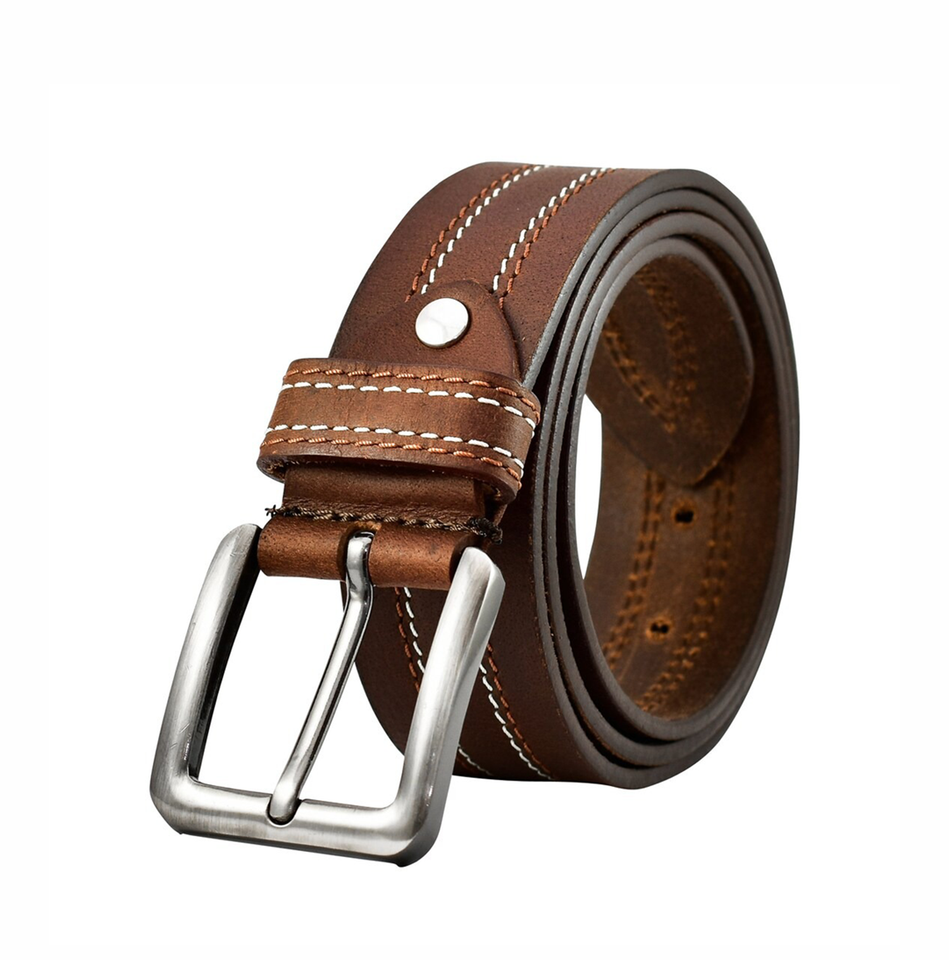 เข็มขัดหนังสี่เหลี่ยมสีทึบสำหรับผู้ชายปรับได้สไตล์คลาสสิกทนทานหัวเข็มขัดเหล็กสวมใส่อย่างเป็นทางการแบบลำลองปรับแต่งได้