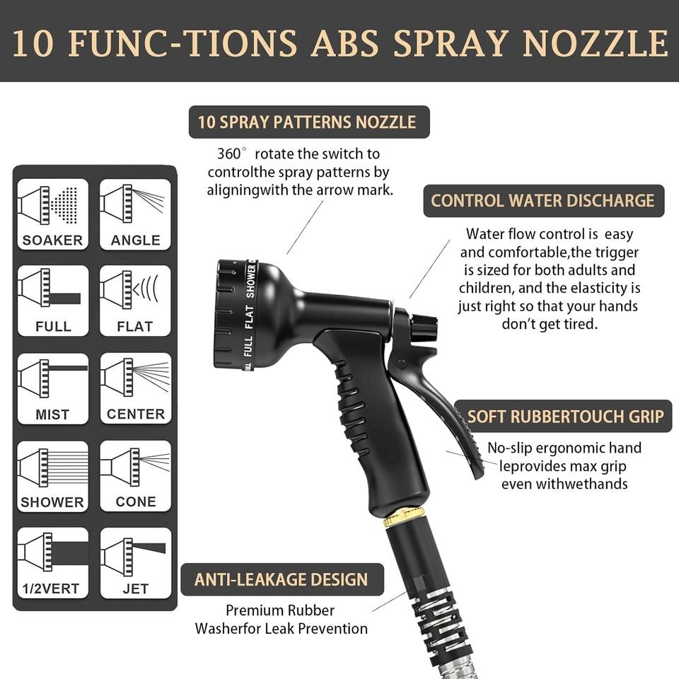 Features of Garden Water Hose:Lightweight, Kink-free, Adjustable,Anti-Abrasion, Rewindable, Soft