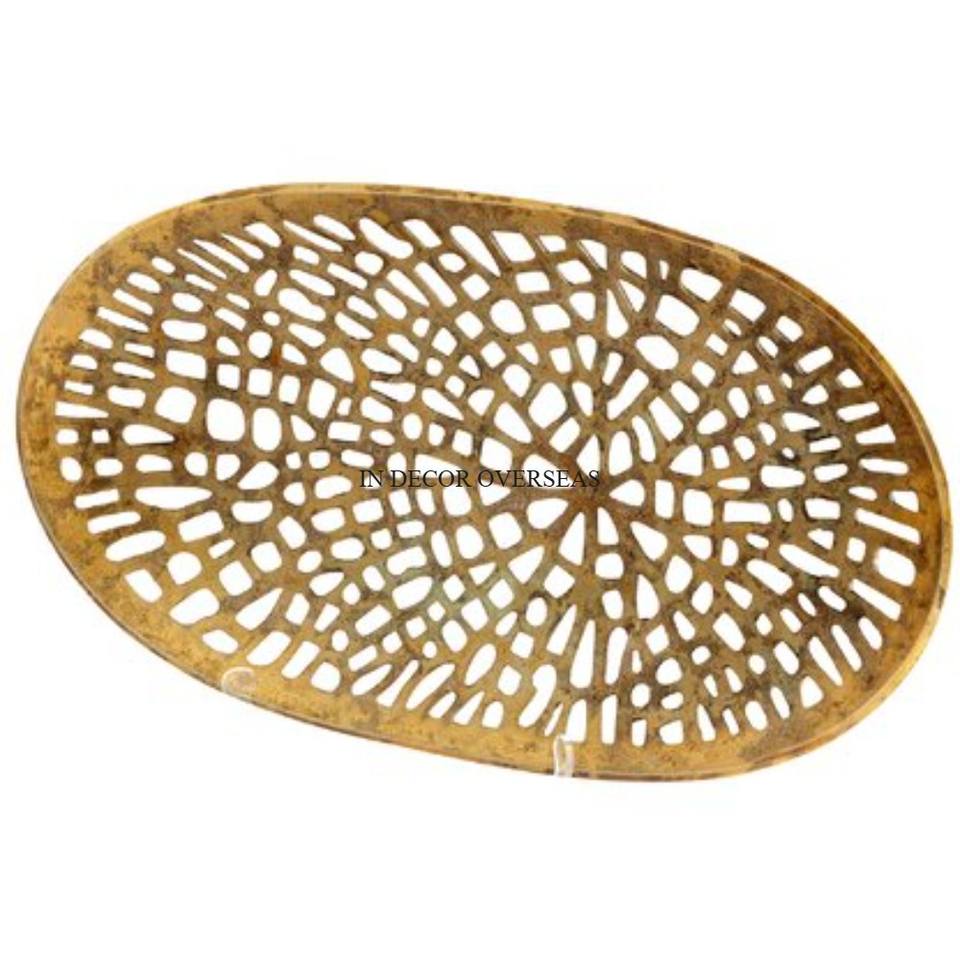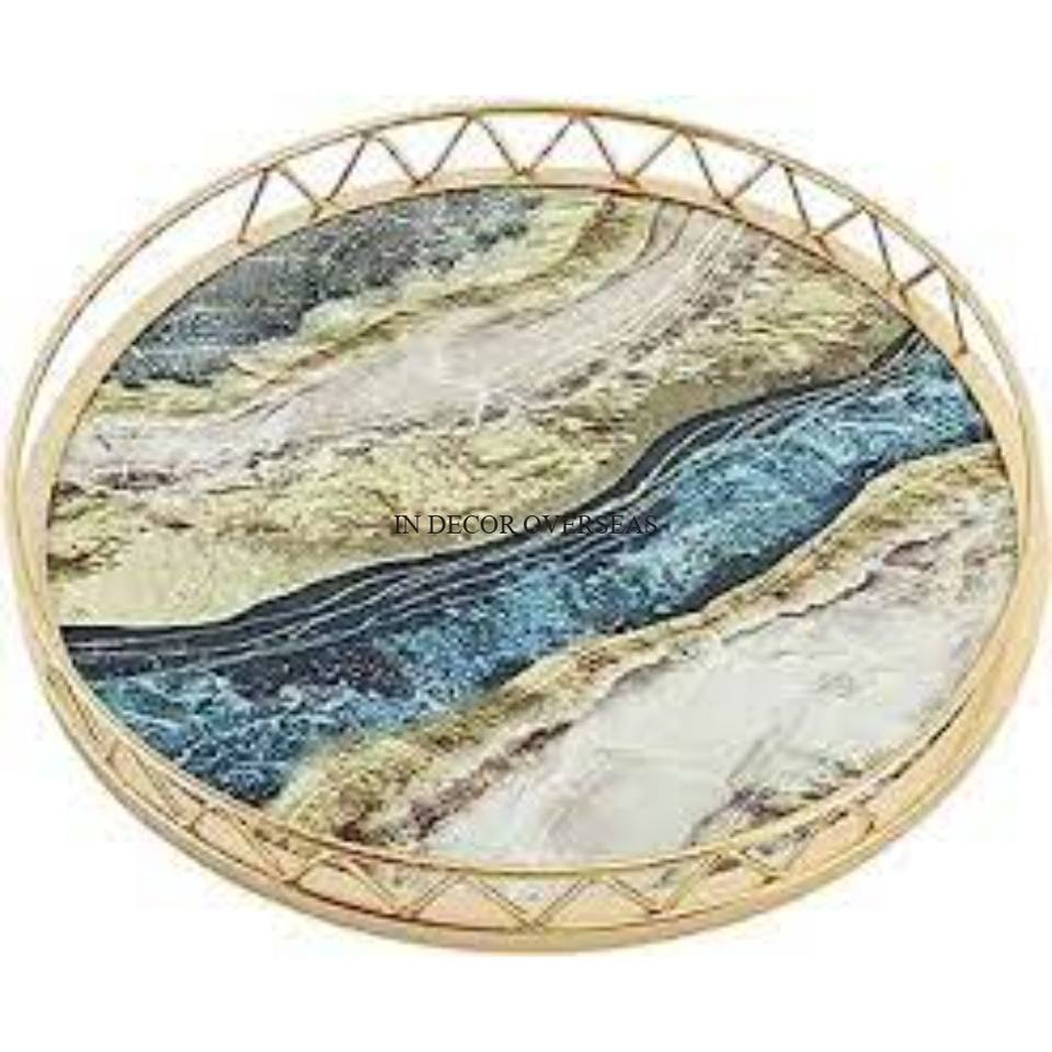 ถาดเคลือบทองโลหะสำหรับงานหนักทรงกลมดีไซน์สร้างสรรค์สมัยใหม่ถาดเสิร์ฟและตกแต่ง