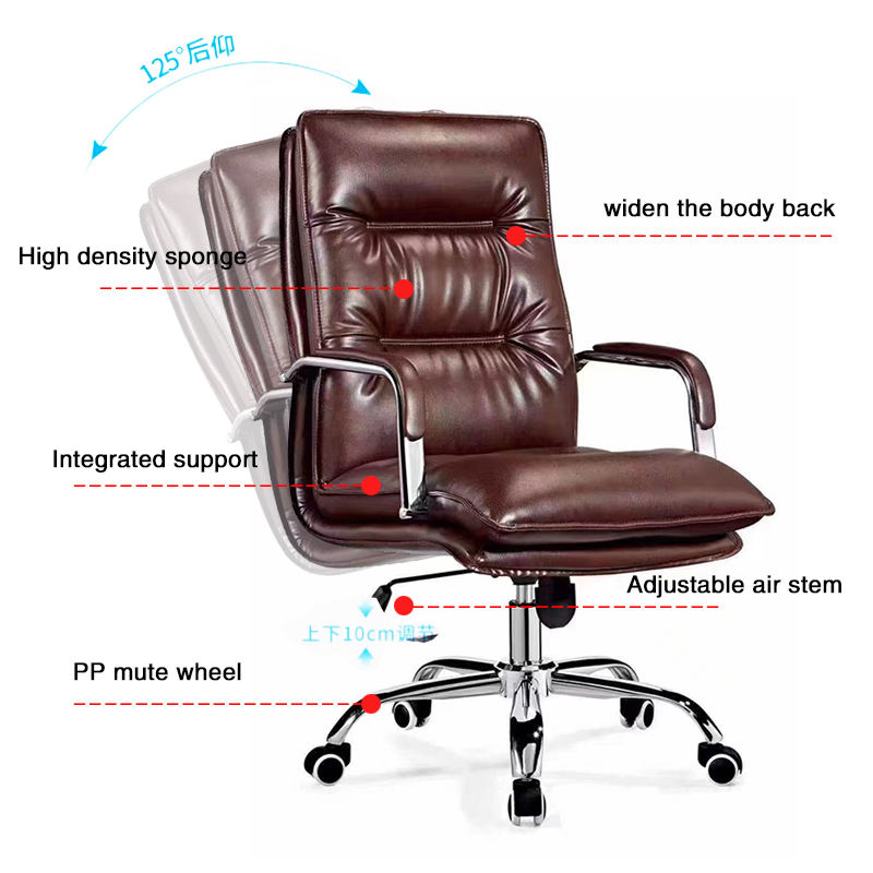 เก้าอี้สำนักงานดีไซน์ทันสมัยปรับความสูงได้พร้อมล้อล็อกวัสดุหนังสังเคราะห์