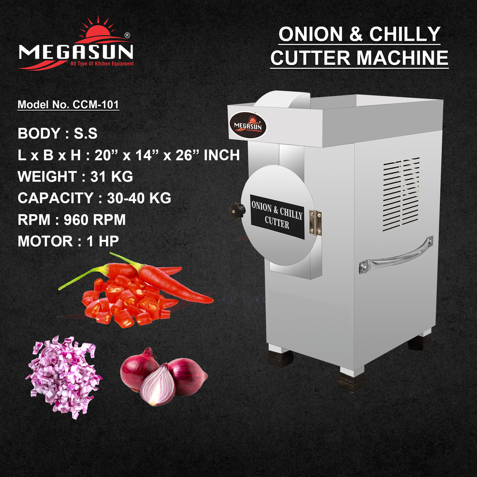 machinery function:Cutting / slicing / dicing onion & chilli into uniform pieces quickly