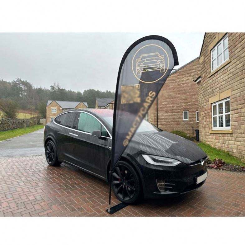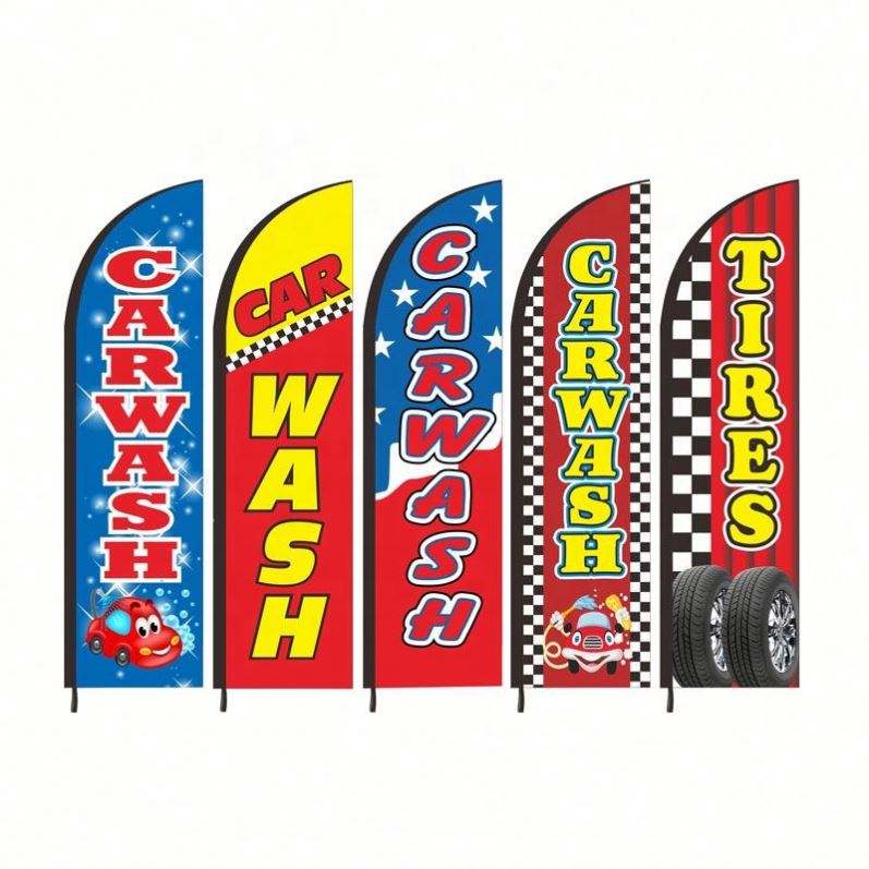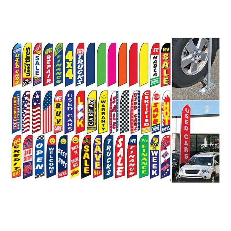ธงขนนกแบบพกพาพับได้สำหรับงานแสดงสินค้าโฆษณาภายนอกอาคาร ทำจากโพลีเอสเตอร์อย่างดีและโครงเหล็ก พร้อมฐานสำหรับติดตั้งบนยางรถยนต์