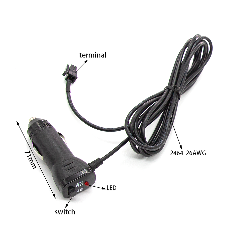 สายไฟสำหรับงานหนักพร้อมไฟแสดงสถานะ LED และสวิตช์ปลั๊กซ็อกเก็ตที่จุดบุหรี่ในรถยนต์สำหรับใช้งานสายไฟรถยนต์