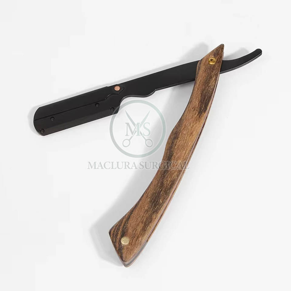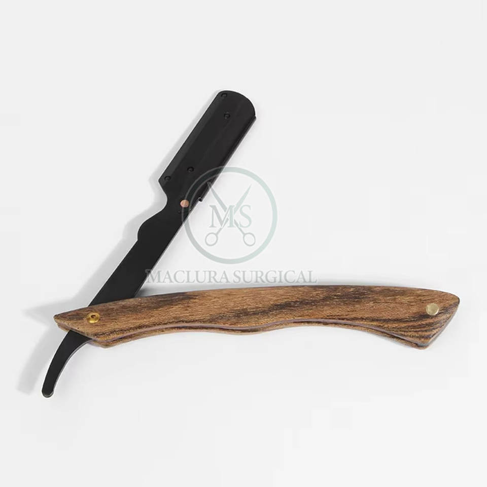 มีดโกนหนวดช่างตัดผมแบบมืออาชีพพร้อมคมเปลี่ยนใบมีดสแตนเลสด้ามไม้สำหรับโกนหนวดและใบหน้า