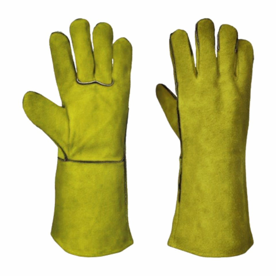 ถุงมือนิรภัยสะท้อนแสงสำหรับงานหนักถุงมือเชื่อมผิวเรียบหนังวัวแยกสารหน่วงไฟป้องกันส่วนบุคคล
