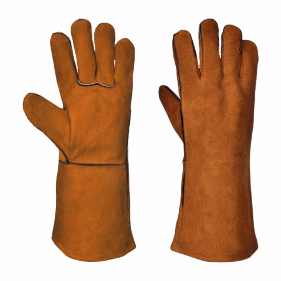 ถุงมือสะท้อนแสงสำหรับงานหนัก ถุงมือป้องกันส่วนบุคคล หนังวัวแท้ ทนไฟ ป้องกันการลวก ถุงมือเชื่อมแบบเรียบ