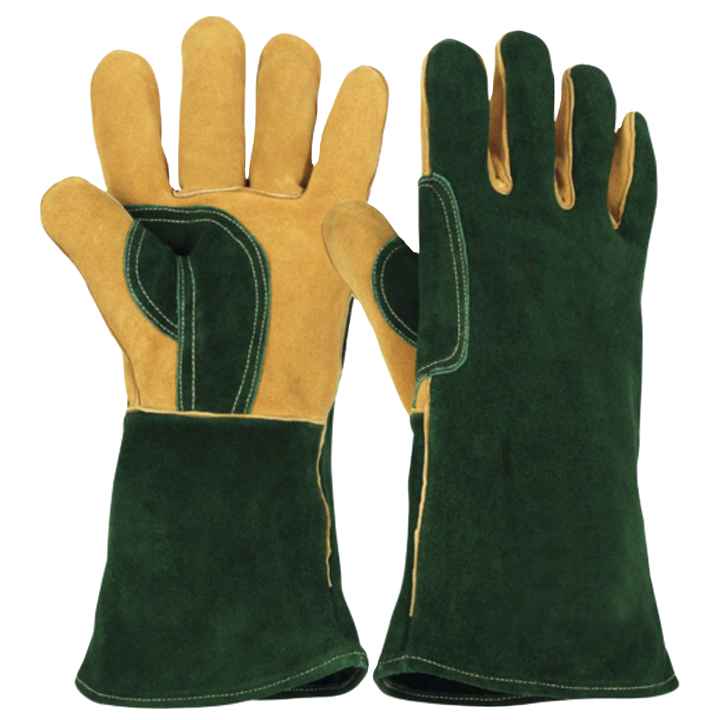 ถุงมืองานเชื่อมหนังวัวเสริมความแข็งแรงทนทานต่อการขัดถูถุงมือนิรภัยป้องกันส่วนบุคคล