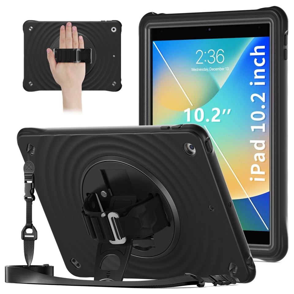 เคสซิลิโคนกันกระแทกอย่างดีสำหรับ iPad 10.2 นิ้ว รุ่นปี 2019-2021 ดีไซน์ยอดนิยม หมุนได้ 360 องศา พร้อมขาตั้ง