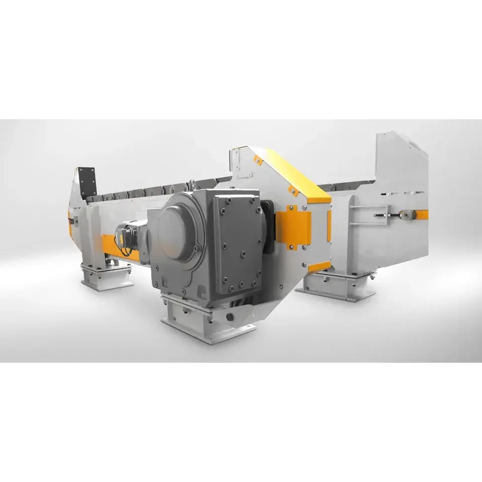 Heavy-Duty Slat Conveyor with Screw Discharge for Extreme Loads up to 34 Tons for Construction and Assembly Line Applications