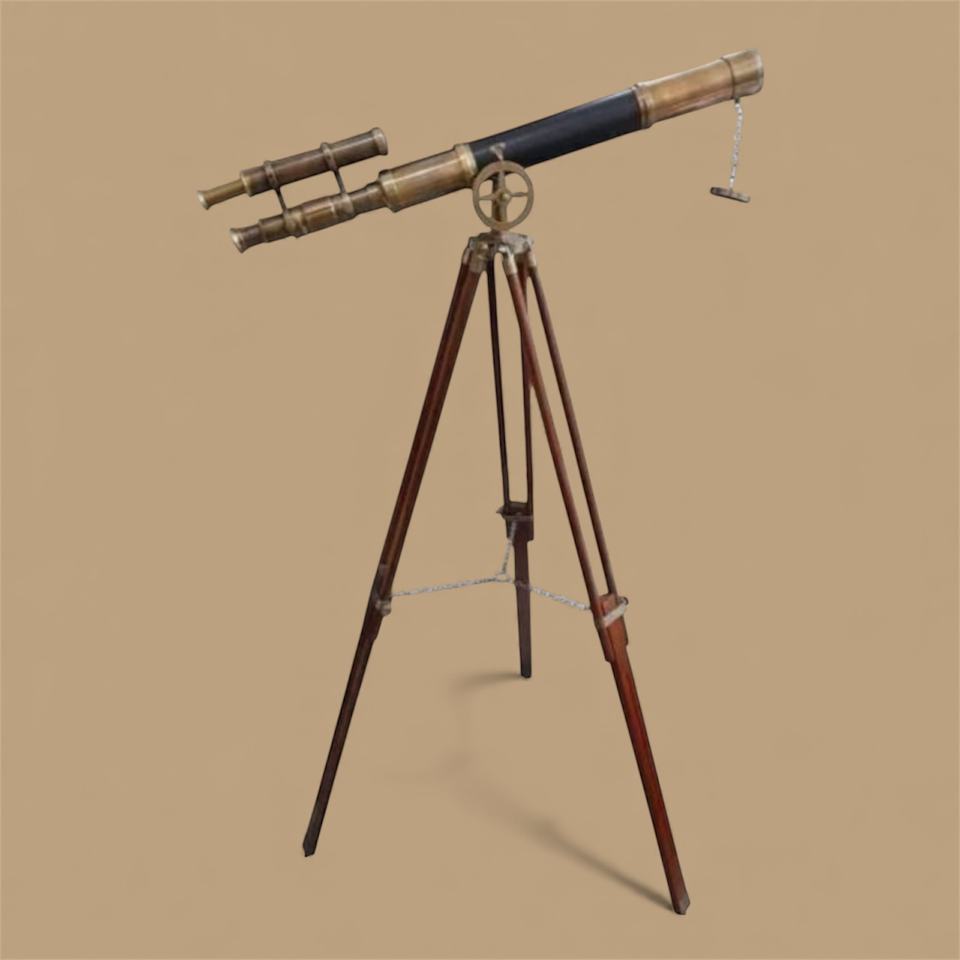 ขาตั้งกล้องโทรทรรศน์แบบซูม ทำจากทองเหลืองแข็งแรงทนทาน กำลังขยาย 15 เท่า ปรับความสูงได้ 130-170 ซม. พร้อมฐานยึดทองเหลืองอเนกประสงค์