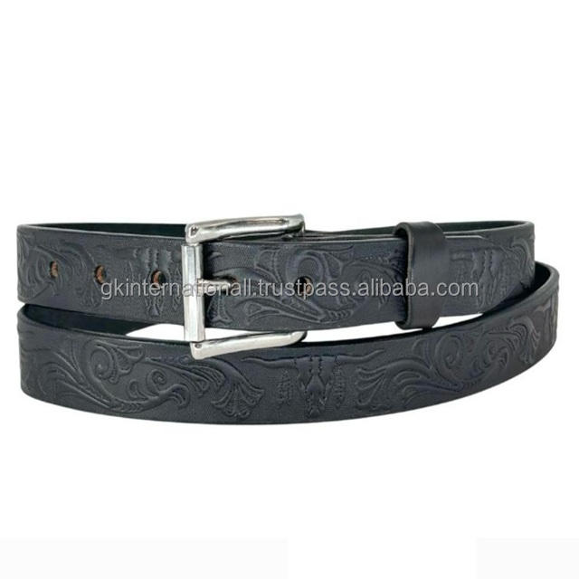 เข็มขัดหนังสไตล์ตะวันตกแบบเต็มเม็ดแข็งทนทานสำหรับบุรุษและสตรีเข็มขัดคาวบอยแบบลูกกลิ้งชุบนิกเกิล