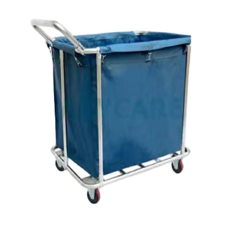Heavy-Duty Solid Linen Trolley with Removable Canvas Bag Durable Hospital Laundry Cart for Collection and Transport