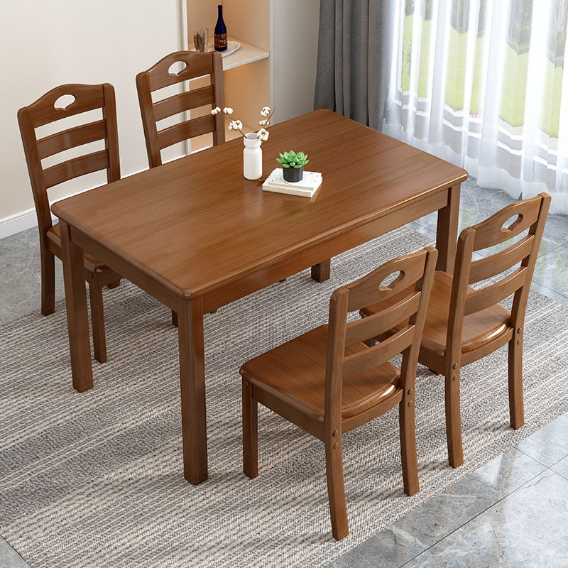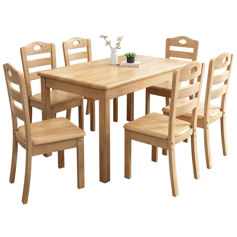 โต๊ะไม้เนื้อแข็งแบบหนา พร้อมเก้าอี้ไม้ที่นั่งสบาย ชุดโต๊ะอาหารไม้ที่มั่นคง สำหรับใช้ในบ้านหรือร้านอาหาร