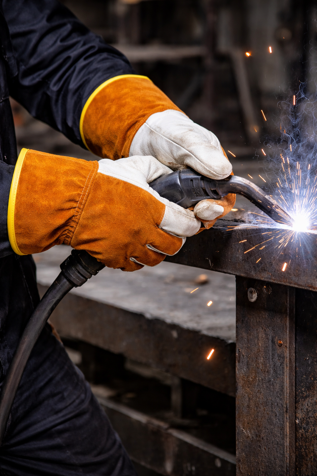 ถุงมือเชื่อมหนังแท้แบบหนาพิเศษ พร้อมปลอกแขนยาวป้องกันความร้อน สำหรับงานโลหะและงานประกอบที่ต้องทนความร้อน