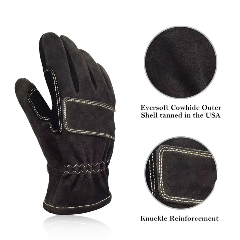 ถุงมือดับเพลิงหนังแท้แบบหนาพิเศษสำหรับงานดับเพลิงในพื้นที่ป่า ถุงมือดับเพลิงโครงสร้างแข็งแรง บุเคฟลาร์ ป้องกันการบาดและการกระแทก