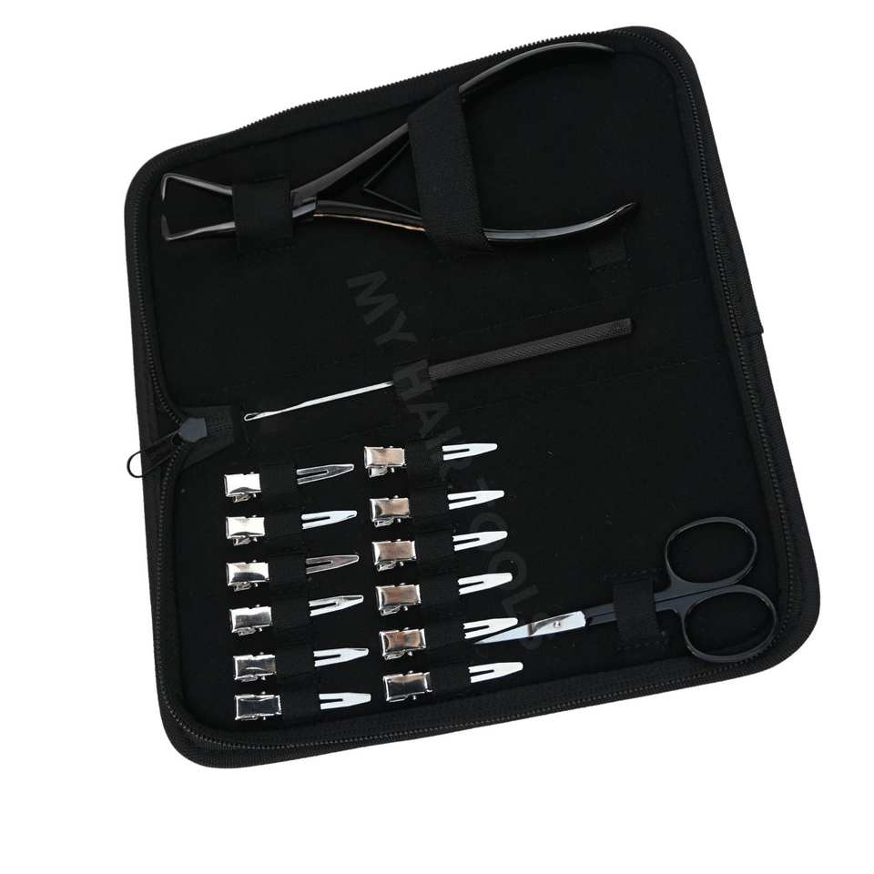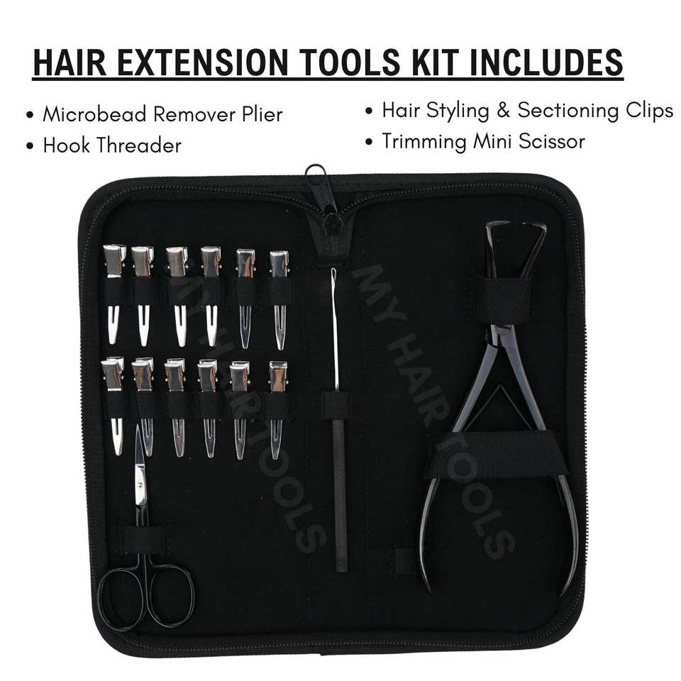 ชุดเครื่องมือต่อผมสแตนเลสแบบหนาพิเศษ คีมถอดไมโครบีดส์ แบบสปริงคู่ ด้ามจับกันลื่น กรรไกรขนาดเล็ก และคลิปหนีบผม