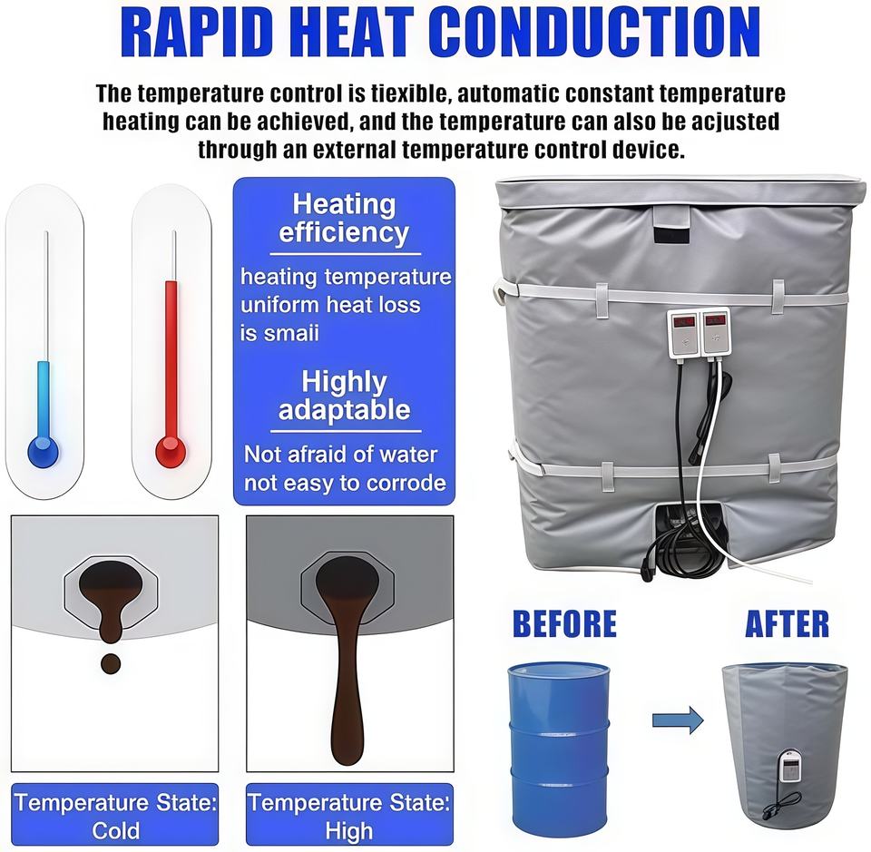 เครื่องทำความร้อนแบบหนีบติดถัง IBC สำหรับน้ำมันแร่และน้ำมันหล่อลื่นอุตสาหกรรมที่มีอุณหภูมิปานกลาง ทำจากสแตนเลสสตีลสำหรับงานหนัก