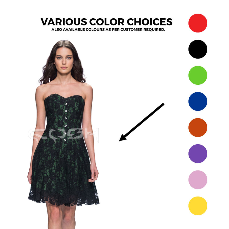 ชุดคอร์เซ็ทผ้าซาตินสีเขียวมรกตแบบโอเวอร์บัสต์เสริมโครงเหล็กอย่างดี พร้อมผ้าลูกไม้ตาข่ายลายดอกไม้สไตล์โกธิค จากผู้จำหน่าย