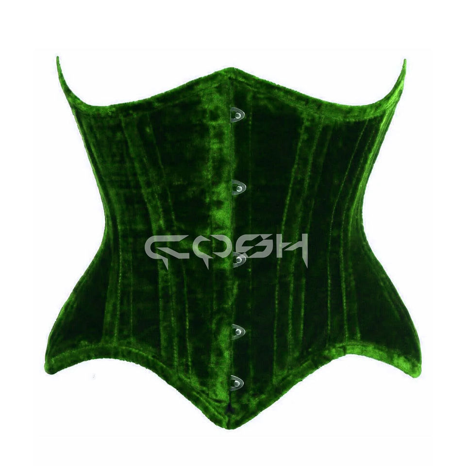 ชุดกระชับสัดส่วนรัดเอวแบบมีโครงเหล็กสำหรับงานหนัก สีเขียว-ม่วง กำมะหยี่ แบบรัดใต้อก