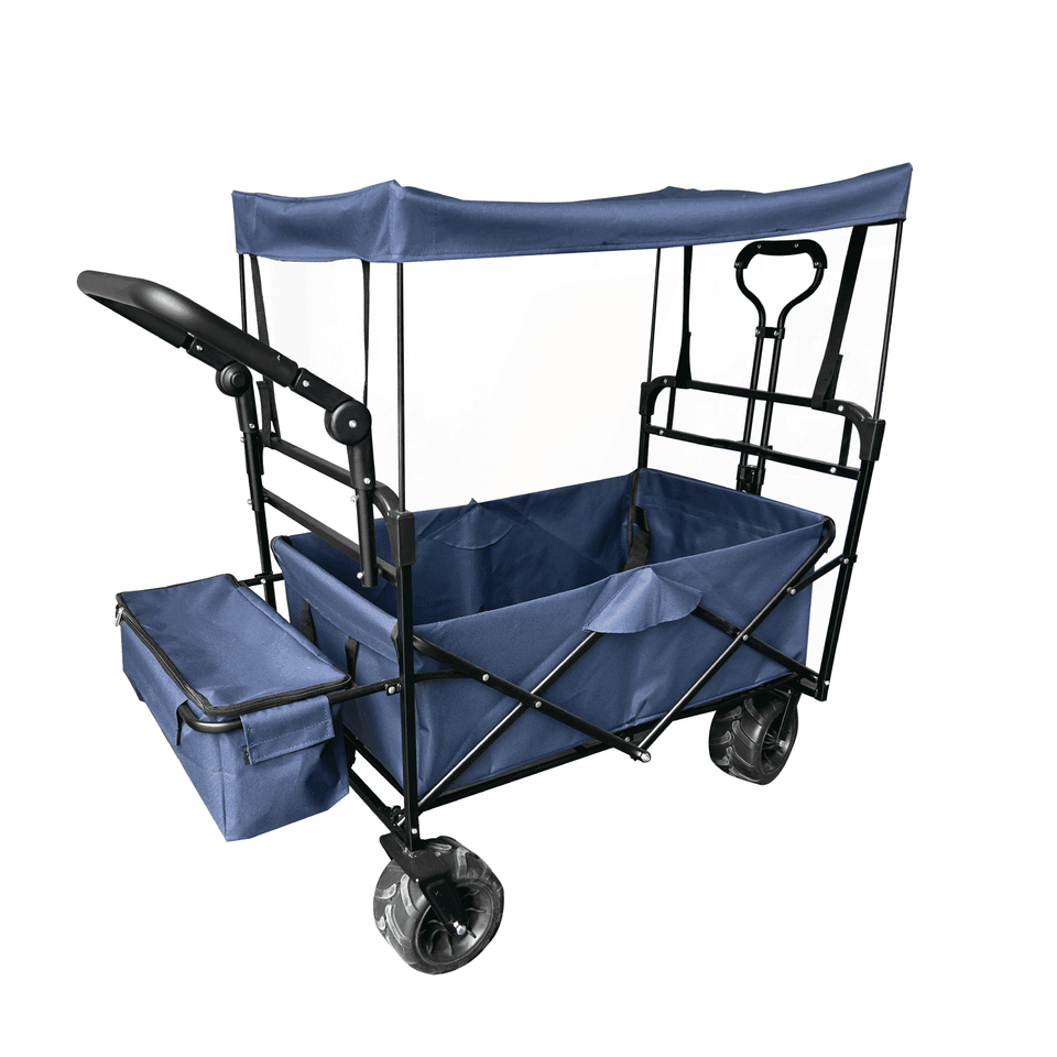 รถเข็นอเนกประสงค์พับได้โครงเหล็กแข็งแรงทนทานสำหรับใช้งานกลางแจ้ง รับผลิตตามแบบ (OEM) ใช้สำหรับจัดเก็บและช้อปปิ้ง ใช้ได้ทุกพื้นที่ รวมถึงชายหาด พร้อมหลังคา